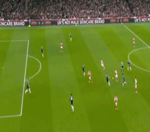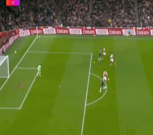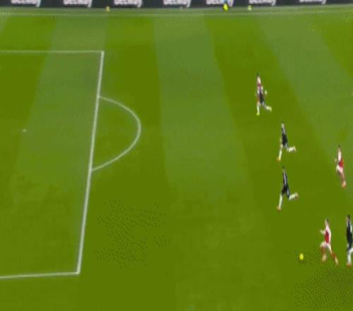 苏维门迪策动反击,特罗萨德左路横传,替补登场的热苏斯世界波直挂死角,4-0!