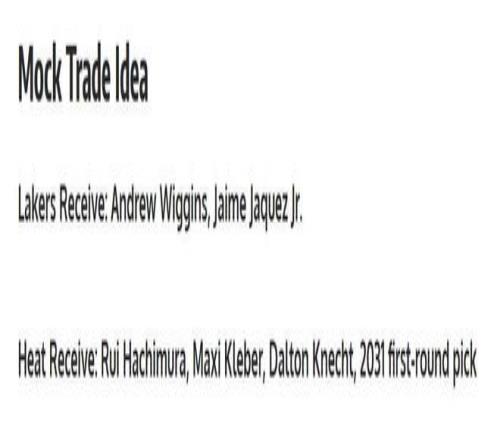 湖人得到:维金斯+小海梅;