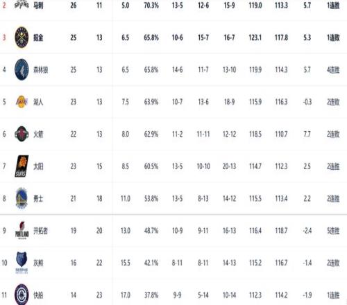 根据西部最新的排名情况,雷霆在以一分险胜灰熊之后,球队遥遥领先。那么剩下的10支球队将成为季后赛+附加赛的竞争者,并且在西部前七位的争夺中,战况特别激烈。
