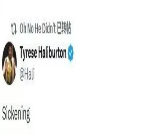 因右脚跟腱撕裂本赛季报销的步行者当家球星哈利伯顿,直言不讳点评了该场比赛,在个人社媒上写道:“令人作呕。”
