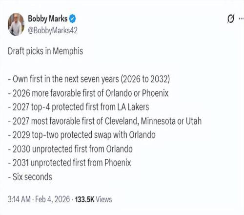 根据薪资结构专家鲍比-马克斯的说法,灰熊队通过这笔交易还创造了NBA历史最大的交易特例价值2880万,灰熊队在得到三个首轮签后,未来7年也囤积了12个首轮签+6个次轮签(他此前说是13个首轮签,后更改为12个+1互换),首轮签数量仅次于篮网、雷霆。