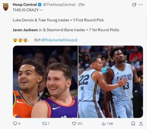 换言之灰熊队在一年的时间里接连交易了两位球队亿元球星,球队也换到了7个首轮签+1个首轮互换权。