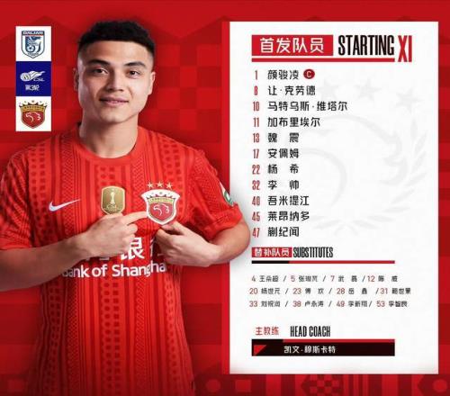 海港首发:门将是颜骏凌,后防线:杨希和李帅打两个边后卫,吾米提江和魏震组成双中卫。前场:维塔尔和克劳德组成双后腰,前场:加布里埃尔、蒯纪闻和安佩姆一字排开。前锋是莱昂纳多。