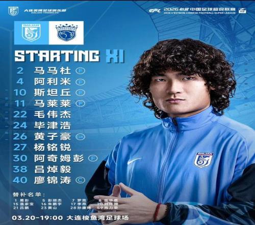 双方首发:大连英博门将是黄子豪,后防线:吕焯毅和毛伟杰打两个边后卫,毕津浩和马马杜组成双中卫。前场:斯坦丘和杨铭锐打两个边前卫,队长廖锦涛和阿利米组成双后腰。前锋是阿奇姆彭和马莱莱。