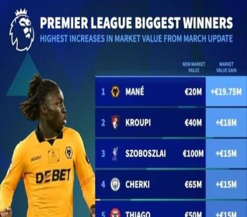 英超身价涨幅榜:索博斯洛伊上涨1500万欧达1亿,谢尔基上涨1500万欧>>